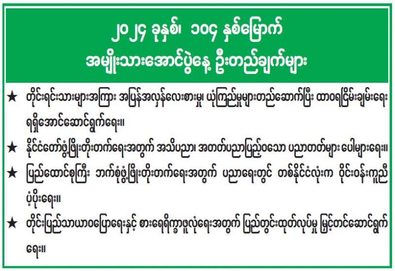 ၂၀၂၄ ခုနှစ်၊ ၁၀၄ နှစ်မြောက် အမျိုးသားအောင်ပွဲနေ့ ဦးတည်ချက်များ