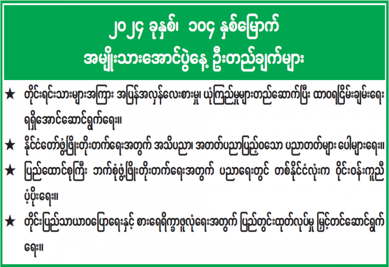 ၂၀၂၄ ခုနှစ်၊ ၁၀၄ နှစ်မြောက် အမျိုးသားအောင်ပွဲနေ့ ဦးတည်ချက်များ