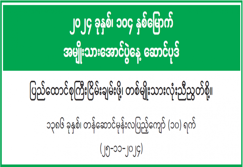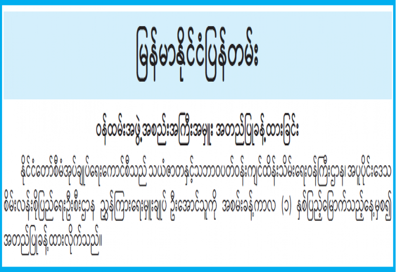 ရန်ကုန်မြို့နှင့် မန္တလေးမြို့အတွက် ရည်ညွှန်းလက်ကားဈေးနှုန်းများနှင့် ပြည်ထောင်စုနယ်မြေ နေပြည်တော်၊ တိုင်းဒေသကြီး/ပြည်နယ် မြို့တော်များအတွက် ရည်ညွှန်းလက်လီဈေးနှုန်းများ