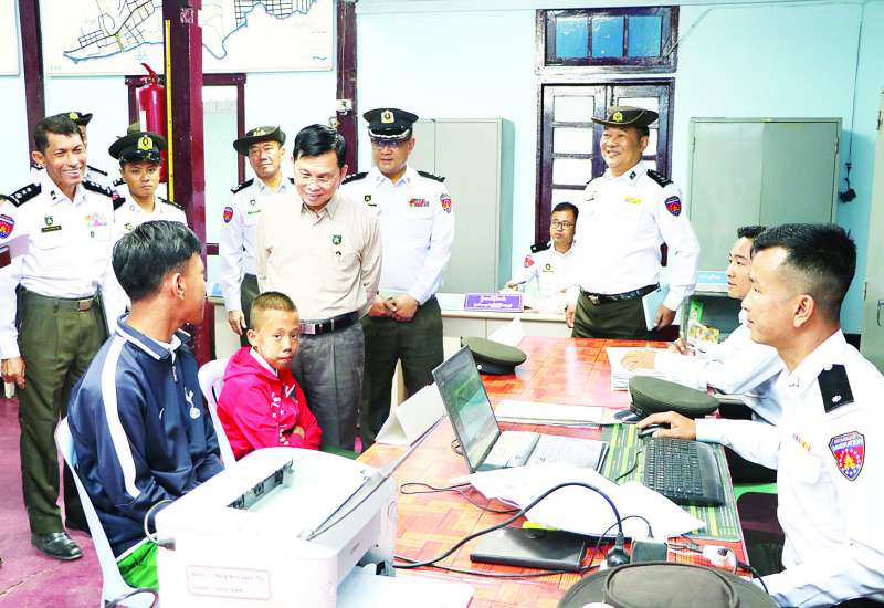လူဝင်မှုကြီးကြပ်ရေးနှင့် ပြည်သူ့အင်အားဝန်ကြီးဌာန ပြည်ထောင်စုဝန်ကြီး ဦးမြင့်ကြိုင်နှင့် တာဝန်ရှိသူများသည် ယမန်နေ့ နံနက်ပိုင်းက ရှမ်းပြည်နယ် (အရှေ့ပိုင်း) တာချီလိတ်မြို့နယ်ရှိ မြန်မာ-လာအို နှစ်နိုင်ငံနယ်စပ် မဲခေါင်မြစ်၏ မြန်မာဘက်ခြမ်းရှိ ဝမ်ပုံဆိပ်ကမ်းလှေဆိပ်နေရာနှင့် ဝမ်ပုံ အပြည်ပြည်ဆိုင်ရာဝင်ထွက်မှု စစ်ဆေးရေးဂိတ်သို့ ရောက်ရှိပြီး ဝမ်ပုံဆိပ်ကမ်း လူဝင်မှုကြီးကြပ်ရေးဆိုင်ရာ နယ်စပ်ဖြတ်သန်းခွင့်စာအုပ် (Border Pass) ဆောင်ရွက်သည့်နေရာနှင့် ဝမ်ပုံလှေဆိပ်နေရာတို့ကို လှည့်လည်ကြည့်ရှုစစ်ဆေးကာ လိုအပ်သည်များ မှာကြားသည်။