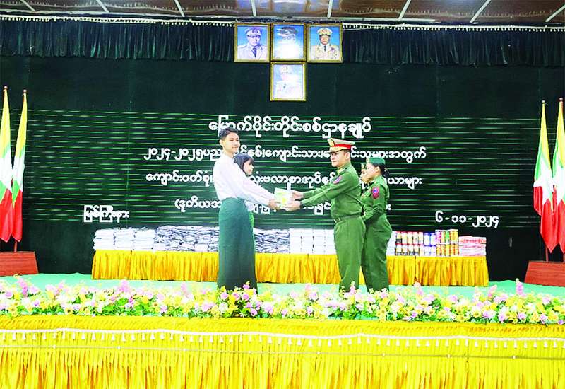 မြောက်ပိုင်းတိုင်းစစ်ဌာနချုပ်၊ ၂၀၂၄-၂၀၂၅ ပညာသင်နှစ် ကျောင်းသား ကျောင်းသူများအတွက် ကျောင်းဝတ်စုံ၊ ကျောင်းသုံးဗလာစာအုပ်နှင့် စာရေးကိရိယာများ (ဒုတိယအကြိမ်) ချီးမြှင့်ပေးအပ်ပွဲကို ယနေ့နံနက်ပိုင်းတွင် တိုင်းစစ်ဌာနချုပ်ရှိ ဗလမင်းထင်ခန်းမ၌ ပြုလုပ်ရာ တိုင်းမှူး ဗိုလ်မှူးချုပ် အောင်ဇော်ထွေးနှင့် အဖွဲ့ဝင်များ၊ အရာရှိ၊ စစ်သည်၊ မိသားစုများ၊ စစ်မှုထမ်းဟောင်းအဖွဲ့ဝင်များ၊ ဆရာ၊ ဆရာမများ၊ ကျောင်းသားမိဘများနှင့် ကျောင်းသား ကျောင်းသူများ တက်ရောက်ကြသည်။