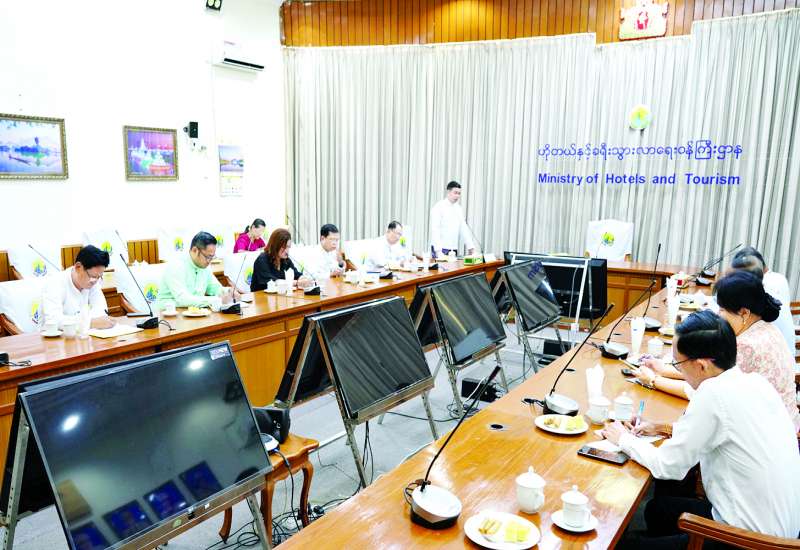 ပဉ္စမအကြိမ် အမျိုးသားအားကစားပွဲတော် ဖွင့်ပွဲအခမ်းအနား၊ ဆုချီးမြှင့်ပွဲအခမ်းအနားနှင့် ပိတ်ပွဲအခမ်းအနားတို့တွင် ဧည့်ခံကျွေးမွေးရေးကိစ္စရပ်များ စီစဉ်ဆောင်ရွက်နိုင်ရန်အတွက် ညှိနှိုင်းအစည်းအဝေးကို ယမန်နေ့က နေပြည်တော်ရှိ ဟိုတယ်နှင့်ခရီးသွားလာရေးဝန်ကြီးဌာန နီလာအစည်းအဝေးခန်းမ၌ ကျင်းပရာဟိုတယ်နှင့် ခရီးသွားလာရေးဝန်ကြီးဌာနနှင့် ဟိုတယ်များမှ တာဝန်ရှိသူများ တက်ရောက်ကြသည်။
