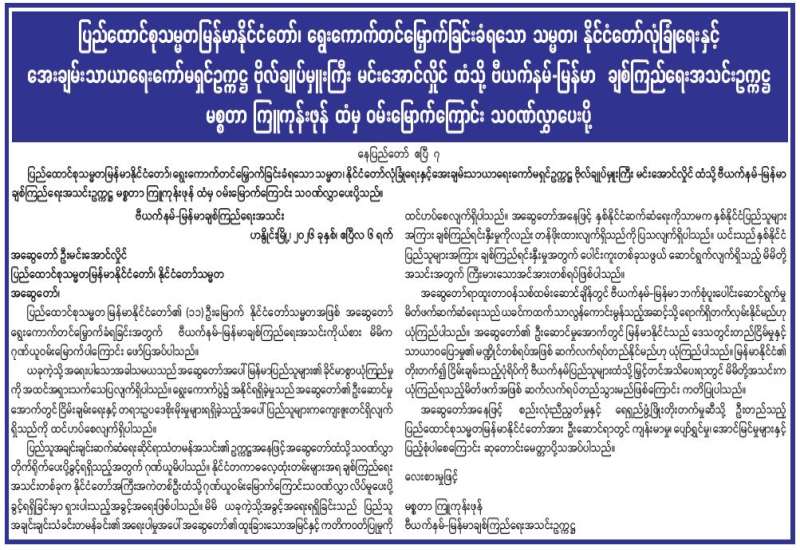 ရန်ကုန်မြို့နှင့် မန္တလေးမြို့အတွက် ရည်ညွှန်းလက်ကားဈေးနှုန်းများနှင့် ပြည်ထောင်စုနယ်မြေ နေပြည်တော်၊ တိုင်းဒေသကြီး/ပြည်နယ် မြို့တော်များအတွက် ရည်ညွှန်းလက်လီဈေးနှုန်းများ