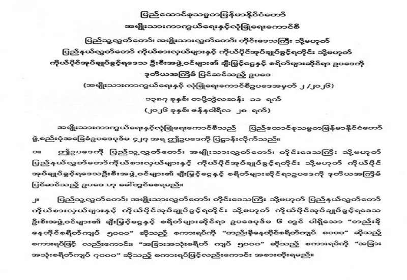 ရန်ကုန်မြို့နှင့် မန္တလေးမြို့အတွက် ရည်ညွှန်းလက်ကားဈေးနှုန်းများနှင့် ပြည်ထောင်စုနယ်မြေ နေပြည်တော်၊ တိုင်းဒေသကြီး/ပြည်နယ် မြို့တော်များအတွက် ရည်ညွှန်းလက်လီဈေးနှုန်းများ