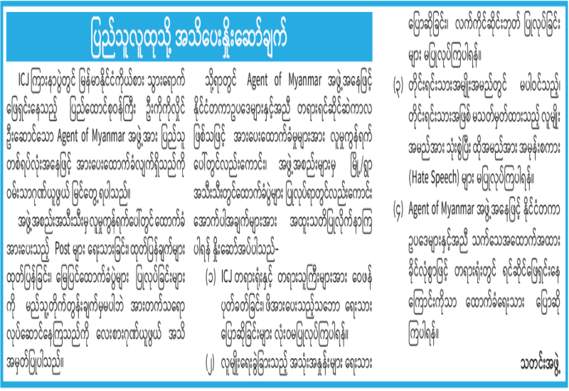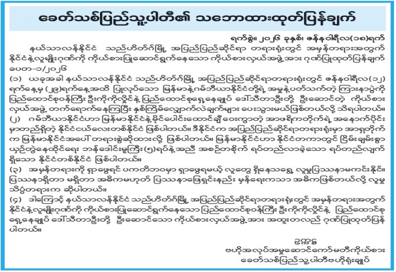 ခေတ်သစ်ပြည်သူ့ပါတီ၏ သဘောထားထုတ်ပြန်ချက်