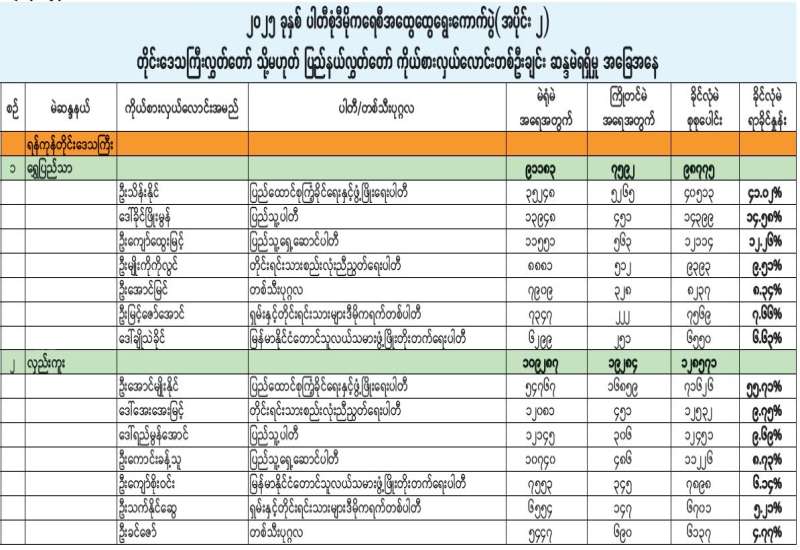 ၂၀၂၅ ခုနှစ် ပါတီစုံဒီမိုကရေစီအထွေထွေရွေးကောက်ပွဲ (အပိုင်း ၂) တိုင်းဒေသကြီးလွှတ်တော် သို့မဟုတ် ပြည်နယ်လွှတ်တော် ကိုယ်စားလှယ်လောင်းတစ်ဦးချင်း ဆန္ဒမဲရရှိမှု အခြေအနေ