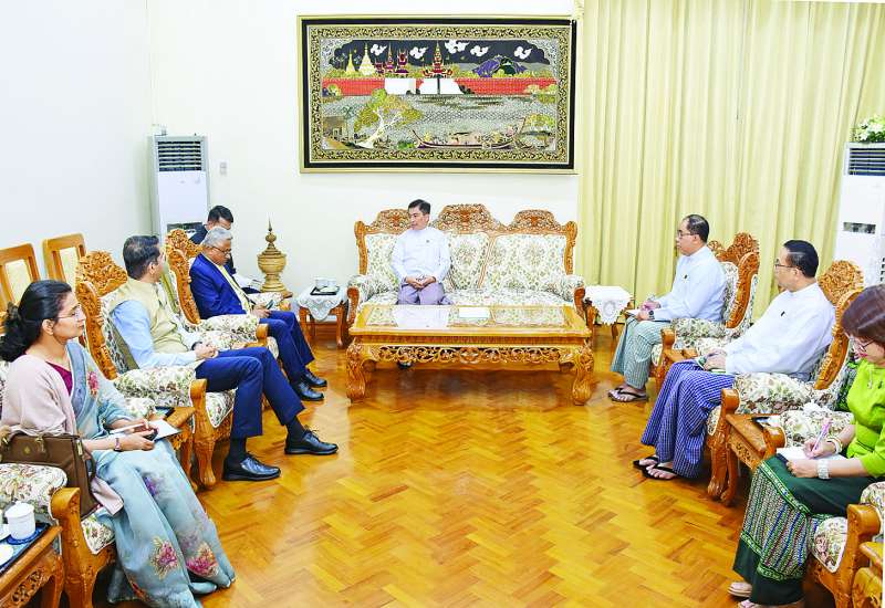 စီးပွားရေးနှင့်ကူးသန်းရောင်းဝယ်ရေးဝန်ကြီးဌာန ပြည်ထောင်စုဝန်ကြီး ဦးချစ်ဆွေသည် မြန်မာနိုင်ငံဆိုင်ရာ အိန္ဒိယနိုင်ငံ သံအမတ် ကြီး H.E. Mr. Abhay Thakur နှင့် (၉) ကြိမ်မြောက် မြန်မာ-အိန္ဒိယ နှစ်နိုင်ငံကုန်သွယ်ရေး ပူးတွဲကော်မတီအစည်းအဝေးသို့ တက်ရောက်ရန် နေပြည်တော်၌ ရောက်ရှိနေသည့် အိန္ဒိယနိုင်ငံကူးသန်းရောင်းဝယ်ရေးနှင့် စက်မှုဝန်ကြီးဌာန ကူးသန်းရောင်းဝယ်ရေးဦးစီးဌာန Additional Secret-ary Sh. Nitin Kumar Yadav တို့ ဦးဆောင်သော ကိုယ်စားလှယ်အဖွဲ့အား ယနေ့ညနေပိုင်းတွင် နေပြည်တော် ရုံးအမှတ် (၃) စီးပွားရေးနှင့် ကူးသန်းရောင်းဝယ်ရေးဝန်ကြီးဌာန ပြည်ထောင်စုဝန်ကြီး၏ ဧည့်ခန်းမ၌ လက်ခံတွေ့ဆုံသည်။