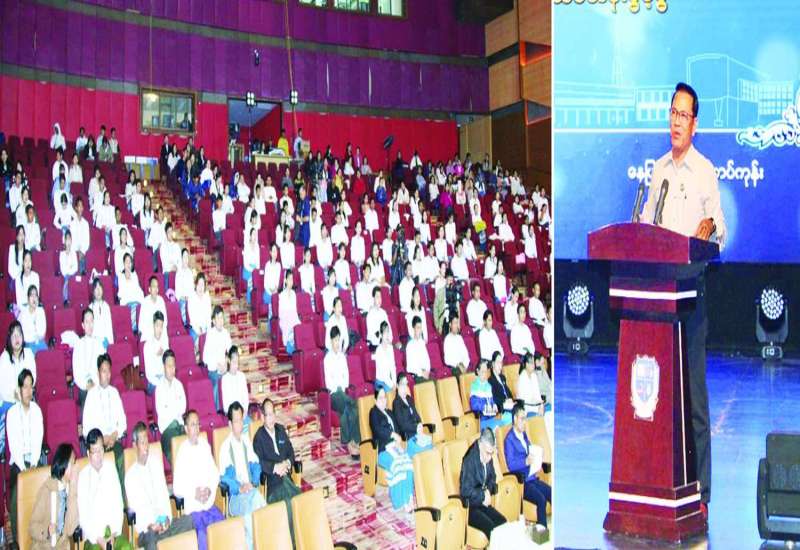 မြန်မာ့အသံနှင့် ရုပ်မြင်သံကြား၏ ဝန်ထမ်းသစ်များ စွမ်းရည်မြှင့်သင်တန်းနှင့် မောင်မယ်သစ်လွင် ကြိုဆိုပွဲကို ယနေ့နံနက် ၁၀ နာရီ တွင် နေပြည်တော်တပ်ကုန်းမြို့ရှိ မြန်မာ့အသံနှင့် ရုပ်မြင်သံကြား၌ ကျင်းပရာ ပြန်ကြားရေးဝန်ကြီးဌာန ပြည်ထောင်စုဝန်ကြီး ဦးမောင်မောင်အုန်း တက်ရောက်သည်။