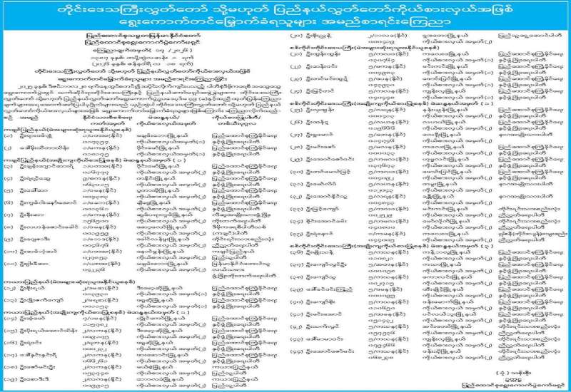 တိုင်းဒေသကြီးလွှတ်တော် သို့မဟုတ် ပြည်နယ်လွှတ်တော်ကိုယ်စားလှယ်အဖြစ် ရွေးကောက်တင်မြှောက်ခံရသူများ အမည်စာရင်းကြေညာ