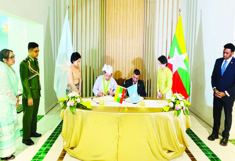 ပြည်ထောင်စုသမ္မတမြန်မာနိုင်ငံတော်နှင့် ဆိုမာလီယာဖက်ဒရယ် သမ္မတနိုင်ငံတို့သည် ကုလသမဂ္ဂပဋိညာဉ်စာတမ်းပါမူကြီးများနှင့် အပြည်ပြည်ဆိုင်ရာ ဥပဒေတို့ကိုအခြေခံပြီး သံတမန်ဆက်ဆံရေးနှင့် ကောင်စစ်ဆက်ဆံရေးဆိုင်ရာ ဗီယင်နာကွန်ဗင်းရှင်းတို့နှင့်အညီ နှစ်နိုင်ငံချစ်ကြည်ရင်းနှီးမှုနှင့် ပူး‌ပေါင်းဆောင်ရွက်မှုတိုးတက်ခိုင်မာစေရန် ဆန္ဒရှိကြသည့် အားလျော်စွာ ၂၀၂၆ ခုနှစ် ဇန်နဝါရီ ၉ ရက်မှစတင်၍ နှစ်နိုင်ငံအကြား သံအမတ်ကြီးအဆင့်ဖြင့် သံတမန်အဆက်အသွယ်ထူထောင်ကြသည်။