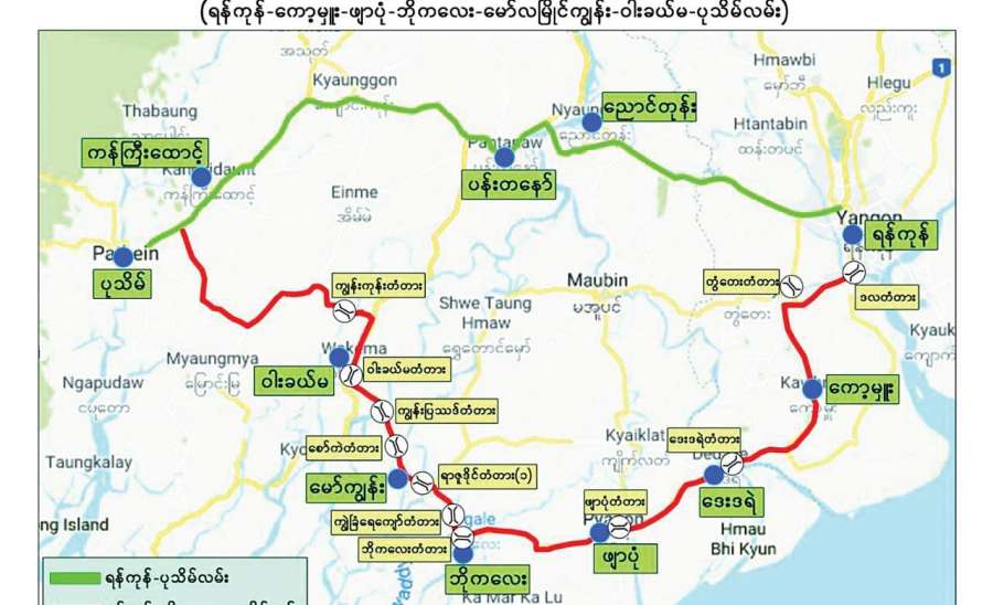 ရန်ကုန်တိုင်းဒေသကြီးနှင့် ဧရာ၀တီတိုင်းဒေသကြီးတို့ကို ဖွံ့ဖြိုးတိုးတက်လာစေမည့် ရန်ကုန်-ဘိုကလေး-ပုသိမ်လမ်းမကြီး