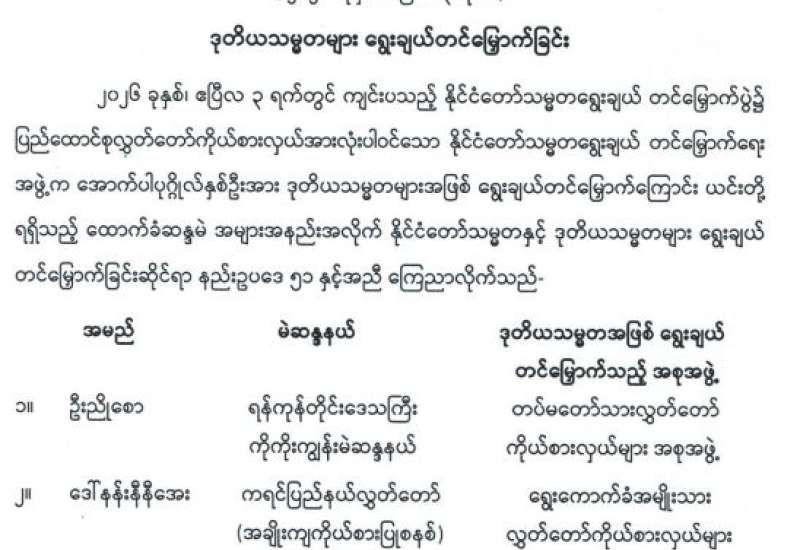 ဒုတိယသမ္မတများ ရွေးချယ်တင်မြှောက်ခြင်း