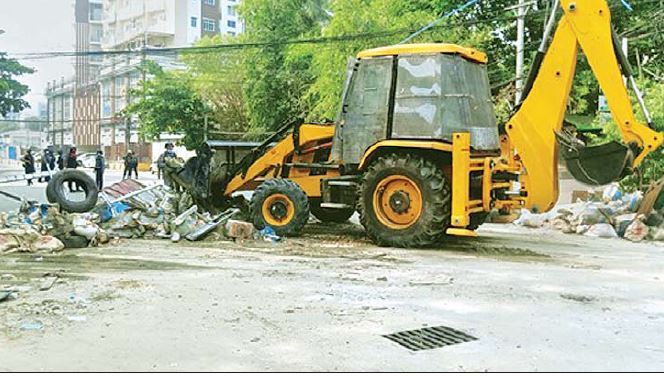 ပန်းဆိုးတန်းလမ်းကြား)၊ဗိုလ်အောင်ကျော်လမ်းထိပ်၊ ၃၉ လမ်းထိပ်၊ ၃၈ လမ်းထိပ်၊ ၃၇ လမ်းထိပ် ပိတ်ဆို့ ထားသော အတားအဆီးများကို ယာဉ်(၅) စီးဖြင့် သိမ်းဆည်း၍လည်းကောင်း စွန့်ပစ်ခဲ့သည်။