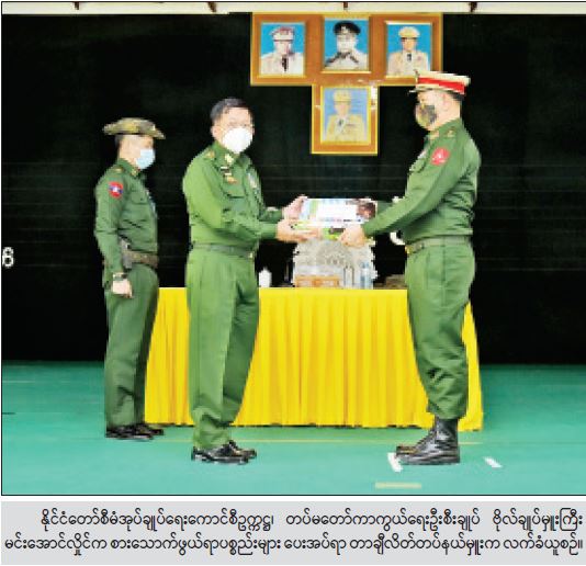 ၂၀၂၀ ရွေးကောက်ပွဲတွင် မရိုးမသားဆောင်ရွက်ခဲ့သည့် ဥပဒေမဲ့ လုပ်ဆောင်မှုကြောင့် တပ်မတော်က နိုင်ငံတော် တာဝန်ကို မလွှဲမရှောင်သာ ဥပဒေနှင့်အညီ ထမ်းဆောင်ခြင်းဖြစ်ပြီး အရေးပေါ်ကာလတာဝန်များ ပြီးမြောက်အောင် ဆောင်ရွက်ပြီးပါက လွတ်လပ်ပြီး တရားမျှတ သည့် ရွေးကောက်ပွဲ ပြန်လည် ပြုလုပ်ကာ တာဝန်လွှဲပြောင်းမှုများ ဆက်လက် လုပ်ဆောင် သွားမည်ဖြစ်ကြောင်း၊ တပ်မတော်သည် နိုင်ငံတော်၏အစိတ်အပိုင်း၊ မိမိတို့တပ်မတော်သား များသည် ပြည်သူများ၏ အစိတ်အပိုင်းဖြစ်သည်နှင့်အညီ နိုင်ငံသူ၊ နိုင်ငံသားများအားလုံး လုံခြုံအေးချမ်းစွာဖြင့် အေးအတူပူအမျှ လက်တွဲပြီး မိမိတို့နိုင်ငံအတွက် ဂုဏ်ယူဝင့်ကြွားစွာ နေထိုင် လုပ်ကိုင်နိုင်အောင် ခိုင်မာစွာ ဆက်လက်လုပ်ဆောင်သွားမည်ဖြစ်ပြီး နိုင်ငံသူ၊ နိုင်ငံသားများ၏ လူမှုစီးပွားဘဝတိုးတက်ရေး ကြိုးစားဆောင်ရွက် သွားမည်ဖြစ် ကြောင်း။
