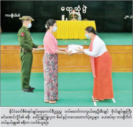 တွေ့ဆုံပွဲအပြီးတွင် နိုင်ငံတော်စီမံအုပ်ချုပ်ရေးကောင်စီဥက္ကဋ္ဌ၊ တပ်မတော် ကာကွယ်ရေး ဦးစီးချုပ်က စားသောက်ဖွယ်ရာပစ္စည်းများကို ပေးအပ်ရာ တာချီလိတ် တပ်နယ်မှူးက လည်းကောင်း၊ နိုင်ငံတော်စီမံအုပ်ချုပ်ရေးကောင်စီဥက္ကဋ္ဌ၊ တပ်မတော် ကာကွယ်ရေးဦးစီးချုပ်၏ ဇနီး ဒေါ်ကြူကြူလှက မိခင်နှင့်ကလေးထောက်ပံ့ငွေ များကို ပေးအပ်ရာ တပ်နယ်မှူး၏ ဇနီးက လည်းကောင်း အသီးသီးလက်ခံရယူကြသည်။ ထို့နောက် နိုင်ငံတော်စီမံအုပ်ချုပ်ရေးကောင်စီ ဥက္ကဋ္ဌ တပ်မတော် ကာကွယ်ရေးဦးစီးချုပ်နှင့် အဖွဲ့ဝင်များသည် တက်ရောက်လာကြသည့် တပ်နယ်အသီးသီးမှ အရာရှိ၊ စစ်သည်၊ မိသားစုများအား ရင်းရင်းနှီးနှီး လိုက်လံ နှုတ်ဆက်ခဲ့ကြသည်။
