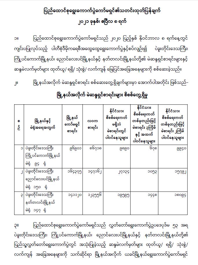 ပြည်ထောင်စုရွေးကောက်ပွဲကော်မရှင်၏သတင်းထုတ်ပြန်ချက် ၂၀၂၁ ခုနှစ်၊ ဧပြီလ ၈ ရက်