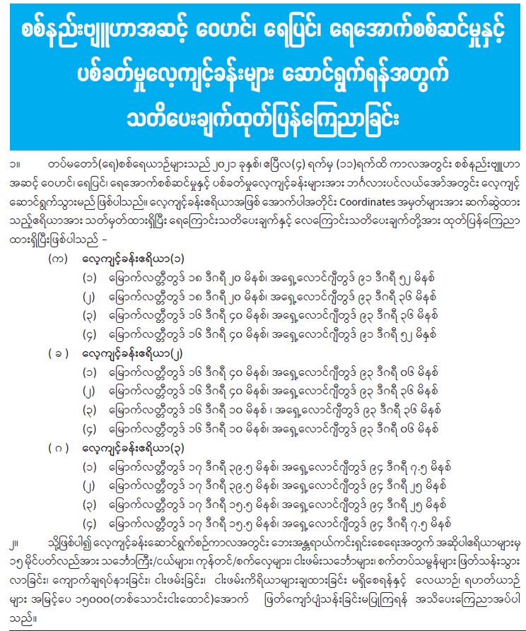 စစ်နည်းဗျူဟာအဆင့် ဝေဟင်၊ ရေပြင်၊ ရေအောက်စစ်ဆင်မှုနှင့် ပစ်ခတ်မှုလေ့ကျင့်ခန်းများ ဆောင်ရွက်ရန်အတွက် သတိပေးချက်ထုတ်ပြန်ကြေညာခြင်း
