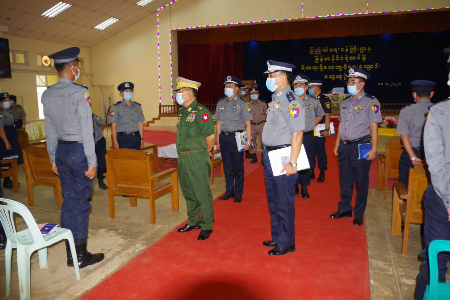 ပြည်ထောင်စုဝန်ကြီးသည် ယနေ့ နံနက်ပိုင်းတွင် ရဲအရာရှိလေ့ကျင့်ရေးကျောင်း (ဇီးပင်ကြီး) စုပေါင်းခန်းမတွင် သင်တန်းကျောင်းမှ တပ်ဖွဲ့ဝင်နှင့် မိသားစုများ၊ ဗဟိုမီးသတ် သင်တန်းကျောင်းမှ တပ်ဖွဲ့ဝင်နှင့် မိသားစုများ၊ ပြင်ဦးလွင်ခရိုင် တပ်ဖွဲ့ဝင်များ၊ အထူးစုံစမ်းရေးဦးစီးဌာနနှင့် အကျဉ်းဦးစီးဌာနမှ တပ်ဖွဲ့ဝင်နှင့် မိသားစုများကို တွေ့ဆုံပြီး နိုင်ငံတော်၏ အခြေအနေ အရပ်ရပ်နှင့် ဆက်လက်ဆောင်ရွက်မည့် လုပ်ငန်းအခြေအနေများ၊ မိသားစုများ သက်သာချောင်ချိရေး ကိစ္စရပ်များ၊ နိုင်ငံ့ဝန်ထမ်းများ ဆောင်ရန်/ရှောင်ရန် ကိစ္စရပ်များ၊ တပ်ဖွဲ့တွင်း စည်းလုံးညီညွတ်ရေး လုပ်ငန်းများကို အသေးစိတ် ချပြရှင်းလင်း အသိပေးပြီး မိသားစုများအတွက် စားသောက်ဖွယ်ရာ များအား ထောက်ပံ့ပေးအပ်သည်။