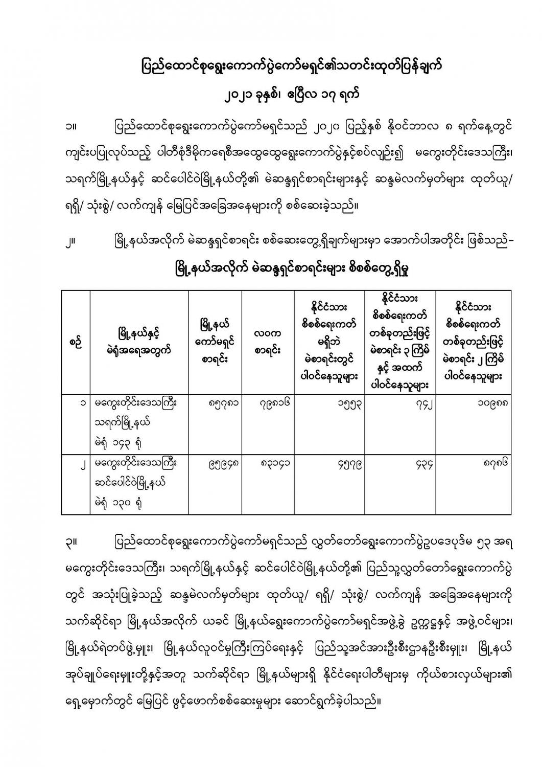 ပြည်ထောင်စုရွေးကောက်ပွဲကော်မရှင်၏သတင်းထုတ်ပြန်ချက် ၂၀၂၁ ခုနှစ်၊ ဧပြီလ ၁၇ ရက်