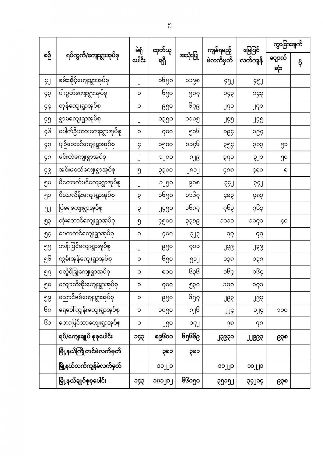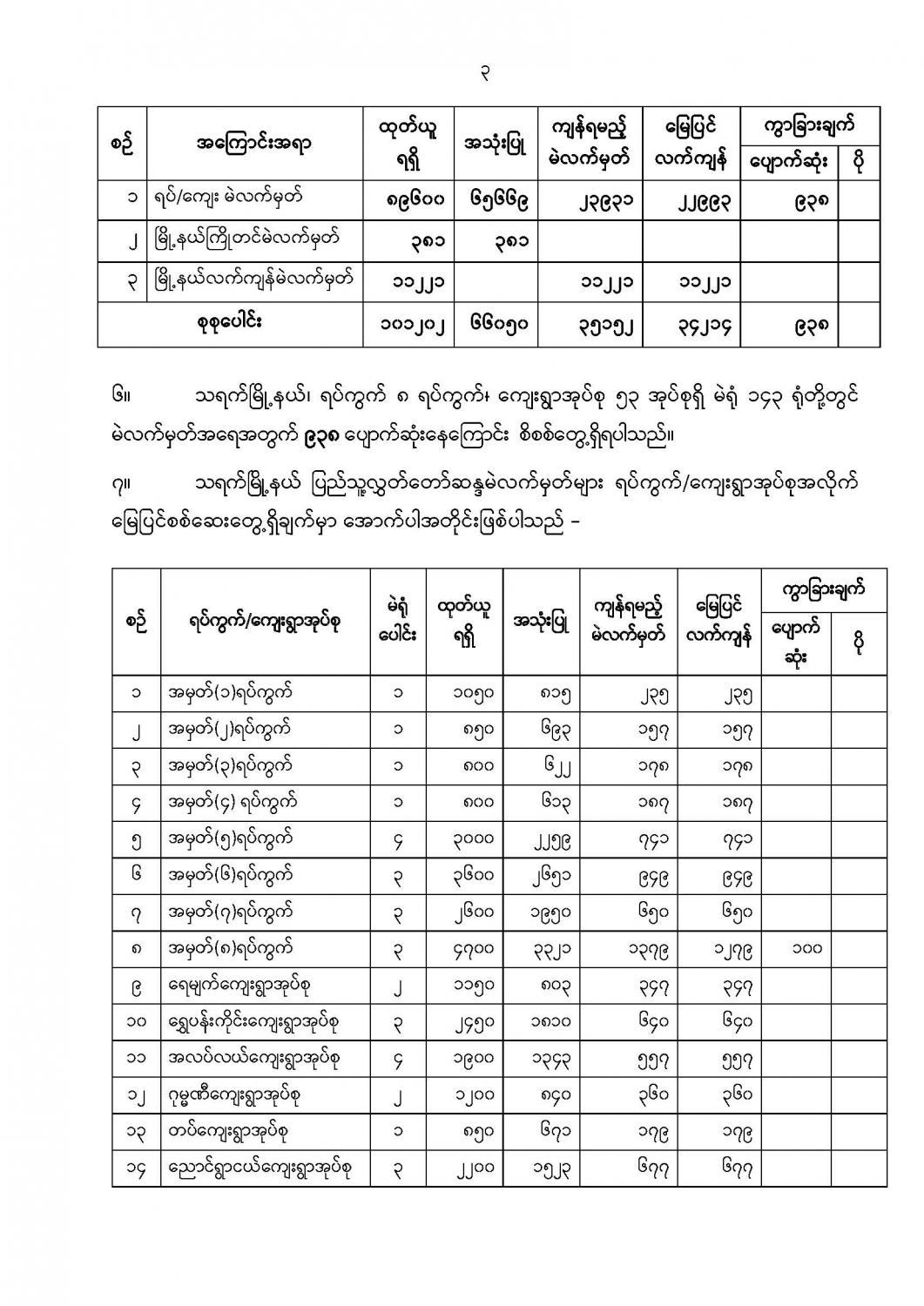 ဦးစီးဌာနနှင့် လုပ်ငန်းများ၏ ကြေညာချက်များ