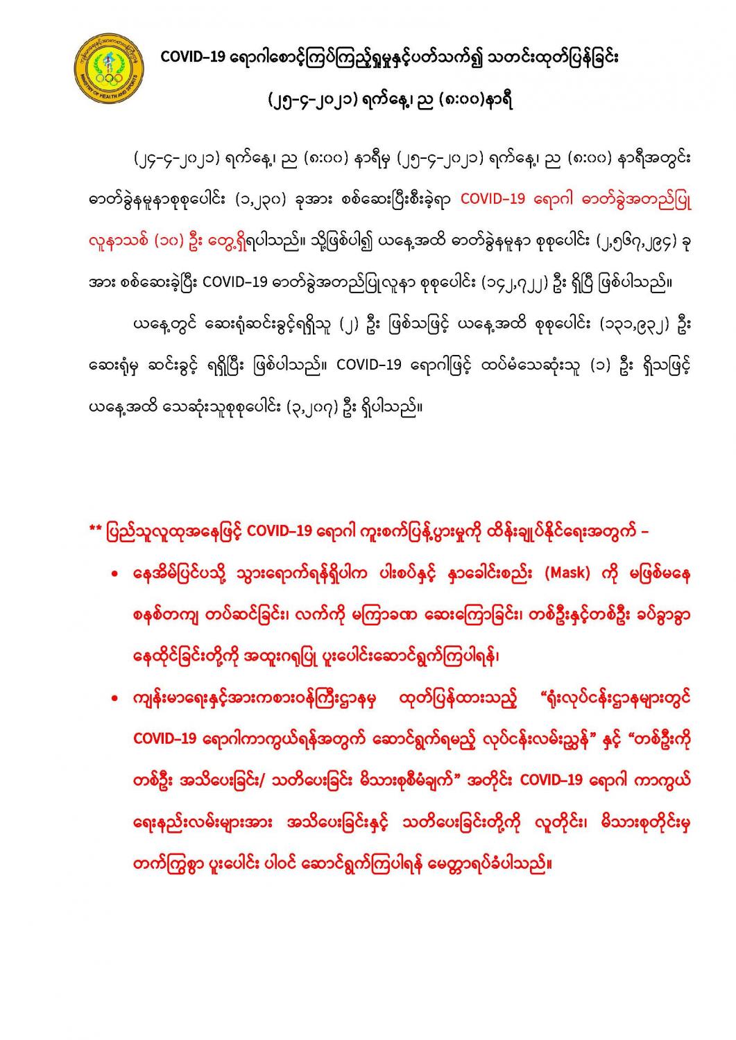 COVID-19 ရောဂါစောင့်ကြပ်ကြည့်ရှုမှုနှင့်ပတ်သက်၍ သတင်းထုတ်ပြန်ခြင်း (၂၅-၄-၂၀၂၁) ရက်နေ့၊ ည (၈:၀၀) နာရီ