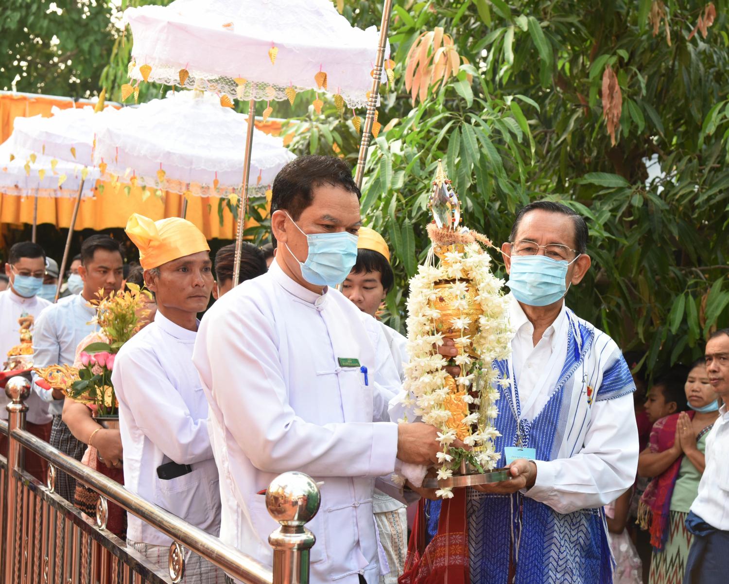 အခမ်းအနားသို့ ပျဉ်းမနားမြို့ ပါဠိတက္ကသိုလ် မင်္ဂလာဇေယျုံ ပရိယတ္တိစာသင်တိုက် ဦးစီပဓာန သာသနာဓဇဓမ္မစရိယ အဂ္ဂမဟာပဏ္ဍိတ ဘဒ္ဒန္တဝိမလဗုဒ္ဓိ အမှူးပြုသော ဆရာတော်၊ သံဃာတော်များ ကြွရောက်တော်မူကြပြီး နိုင်ငံတော်စီမံ အုပ်ချုပ်ရေးကောင်စီ အဖွဲ့ဝင် မန်းငြိမ်းမောင်၊ အလှူရှင် ဒါယကာ၊ ဒါယိကာမများ၊ ပျဉ်မနားမြို့မှ ဒေသခံပြည်သူများ တက်ရောက်ကြည်ညိုကြသည်။