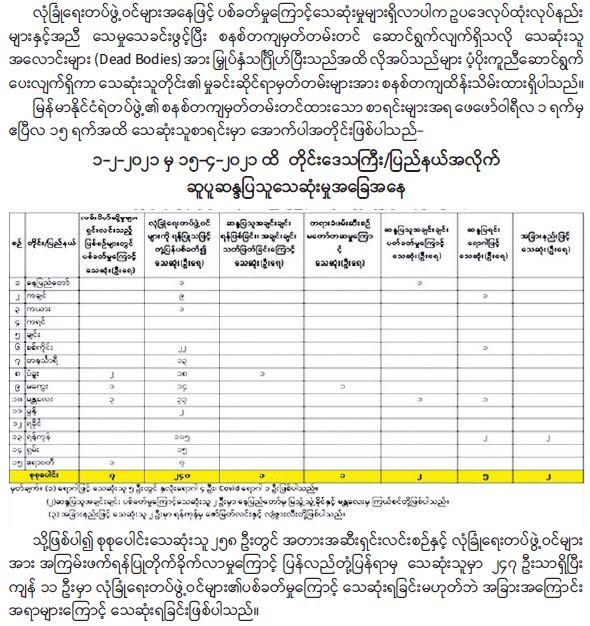 ဆူပူအကြမ်းဖက်မှု ဖြစ်စဉ်များတွင် မှန်ကန်မှုမရှိသည့် သေဆုံးမှုစာရင်းများနှင့် ပတ်သက်၍ သတင်းထုတ်ပြန်ချက် 04/29/2021