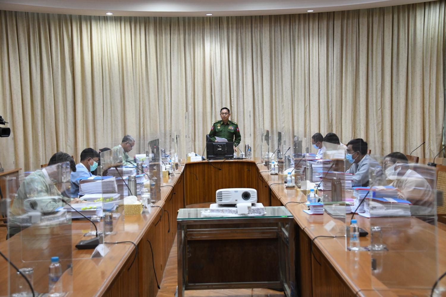 မြန်မာနိုင်ငံရင်းနှီးမြှုပ်နှံမှုကော်မရှင်၏ (၃/၂၀၂၁) ကြိမ်မြောက် အစည်းအဝေးကို ယနေ့ နံနက်ပိုင်းတွင် နေပြည်တော် ရုံးအမှတ်၁၈၊ နိုင်ငံတော်စီမံအုပ်ချုပ်ရေးကောင်စီ အုပ်ချုပ်မှုရုံး၌ ကျင်းပသည်။ အစည်းအဝေးသို့ နိုင်ငံတော် စီမံအုပ်ချုပ်ရေး ကောင်စီအဖွဲ့ဝင်၊ မြန်မာနိုင်ငံ ရင်းနှီးမြှုပ်နှံမှုကော်မရှင်ဥက္ကဋ္ဌ ဒုတိယဗိုလ်ချုပ်ကြီး မိုးမြင့်ထွန်းနှင့် ကော်မရှင်အဖွဲ့ဝင်များ တက်ရောက်ကြသည်။