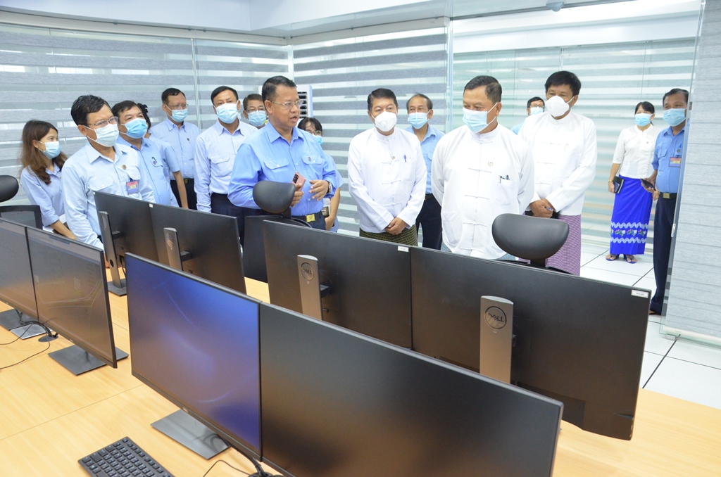 ယင်းနောက် ပြည်ထောင်စုဝန်ကြီးနှင့်အဖွဲ့သည် ရန်ကုန်လျှပ်စစ်ဓာတ်အားပေးရေး ကော်ပိုရေးရှင်း၏ ရန်ကုန်တိုင်းဒေသကြီးအတွင်း ဓာတ်အားစနစ် တည်ငြိမ်စေရေးအတွက် ၆၆ ကေဗွီ မှ ဗို့ ၄၀၀ အထိ ဓာတ်အားလိုင်းများ၊ ဓာတ်အားခွဲရုံများ၊ ဓာတ်အားဖြန့်ဖြူးရေး ထရန် စဖော်မာများ မောင်းနှင်ဖြန့်ဖြူးနေမှုများကို အလိုအလျောက် ထိန်းသိမ်းမောင်းနှင် စောင့်ကြည့် နိုင်၍ ဓာတ်အားပြတ်တောက်မှုများရှိခဲ့ပါက ဓာတ်အားပြတ်တောက်ရသည့် အကြောင်း အရင်း၊ တည်နေရာများကို အချိန်နှင့်တစ်ပြေးညီသိရှိပြီး ဓာတ်အားအမြန်ဆုံး ပြန်လည်ရရှိရန် ဆောင်ရွက်နိုင်၍ ဓာတ်အားပြတ်တောက်မှု ကြာချိန်ကို လျော့ချပေးနိုင်ခြင်း၊ ဓာတ်အားပြတ် တောက်မှုများကို အချိန်နှင့်တစ်ပြေးညီ မီးသုံးစွဲသူများ ထံသို့ Messge ပေးပို့နိုင်ခြင်းတို့အတွက် ဆောင်ရွက်နိုင်ရန် ပထမအဆင့်အနေဖြင့် ဓာတ်အားခွဲရုံ (၁၇) ရုံအတွက် တည်ဆောက် နေသော ဓာတ်အားဖြန့်ဖြူးမှုကွန်ယက်စနစ် SCADA တည်ဆောက် နေမှုတို့ကို ကြည့်ရှု စစ်ဆေးသည်။