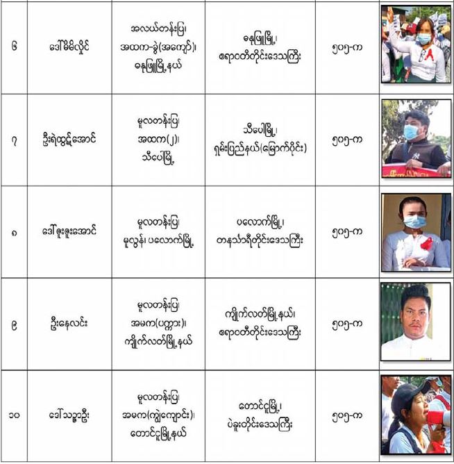 နိုင်ငံတော် တည်ငြိမ်အေးချမ်းမှုကို ပျက်ပြားစေရန်ရည်ရွယ်ချက်ဖြင့် CDM လှုပ်ရှားမှုတွင် ပါဝင်သည့် ပညာရေးဝန်ထမ်းများအား ရာဇသတ်ကြီးဥပဒေပုဒ်မ ၅၀၅-က ဖြင့် အမှုဖွင့် အရေးယူဆောင်ရွက်(၁၀-၅-၂၀၂၁) 05/11/2021