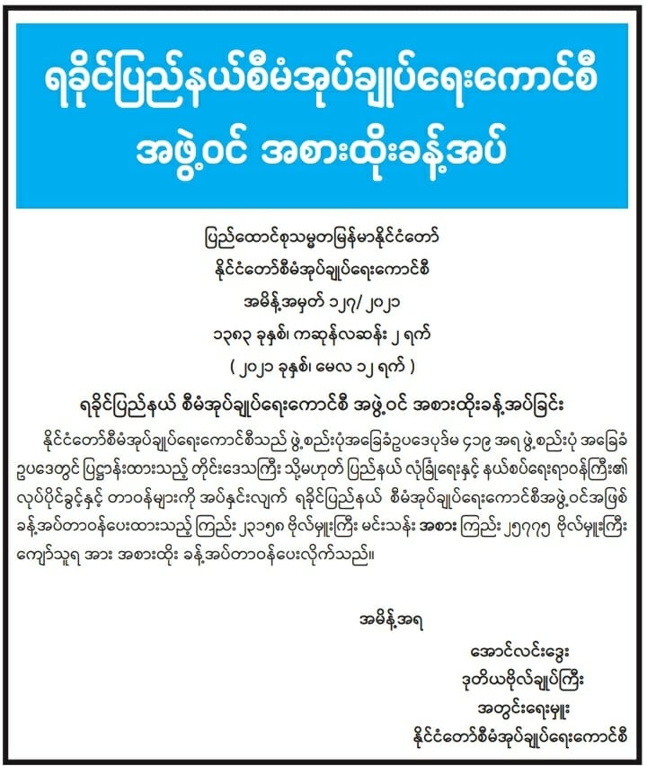 ရခိုင်ပြည်နယ်စီမံအုပ်ချုပ်ရေးကောင်စီ အဖွဲ့ဝင် အစားထိုးခန့်အပ်