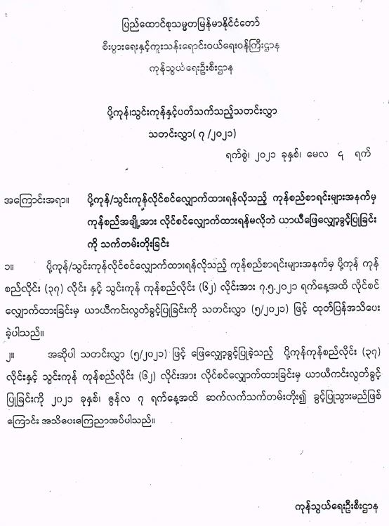 ပြည်ထောင်စုသမ္မတမြန်မာနိုင်ငံတော် စီးပွားရေးနှင့်ကူးသန်းရောင်းဝယ်ရေးဝန်ကြီးဌာန ကုန်သွယ်ရေးဦးစီးဌာန ပို့ကုန်သွင်းကုန်နှင့်ပတ်သက်သည့်သတင်းလွှာ သတင်းလွှာ( ၇ /၂၀၂၁) 05/18/2021