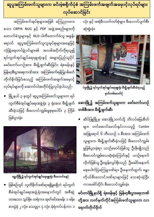 ဆူပူအကြမ်းဖက်သူများက မင်းမဲ့စရိုက်ပုံစံ အကြမ်းဖက်အဖျက်အမှောင့် လုပ်ရပ်များ လုပ်ဆောင်ခြင်း