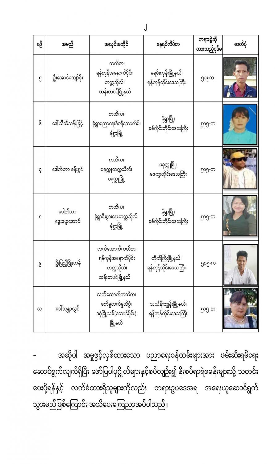 နိုင်ငံတော်တည်ငြိမ်အေးချမ်းမှုကို ပျက်ပြားစေရန်ရည်ရွယ်ချက်ဖြင့် CDM လှုပ်ရှားမှုတွင် ပါဝင်သည့်ပညာရေးဝန်ထမ်းများအား ရာဇသတ်ကြီးဥပဒေပုဒ်မ ၅၀၅-က ဖြင့် အမှုဖွင့်အရေးယူဆောင်ရွက်(၂၃-၅-၂၀၂၁) 05/23/2021