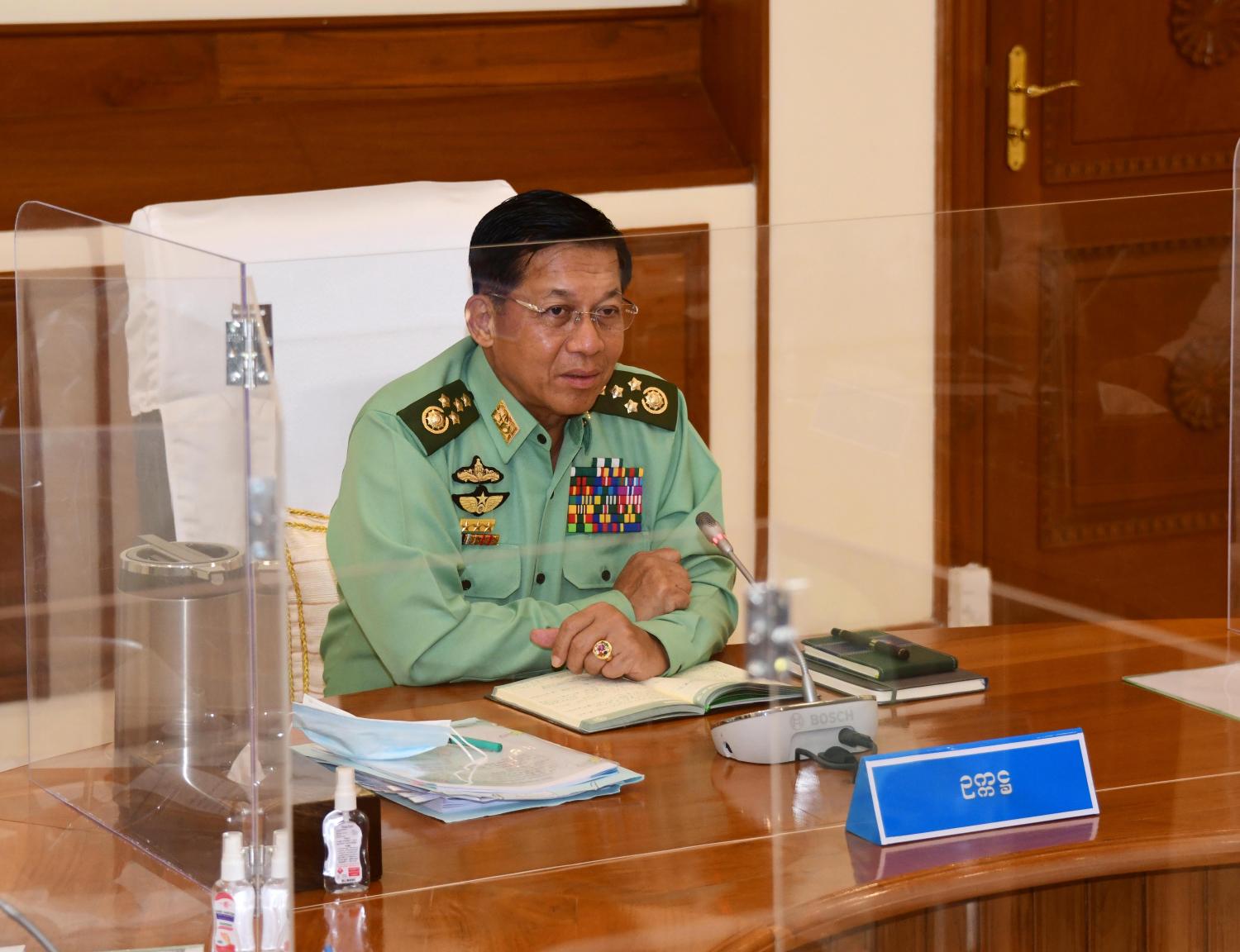 နိုင်ငံတော်စီမံအုပ်ချုပ်ရေး ကောင်စီအစည်းအဝေး (၁၁/၂၀၂၁) ကို ယနေ့မွန်းလွဲပိုင်းတွင် နေပြည်တော်ရှိ နိုင်ငံတော်စီမံအုပ်ချုပ်ရေးကောင်စီဥက္ကဋ္ဌရုံး အစည်းအဝေးခန်းမ၌ ကျင်းပရာ နိုင်ငံတော်စီမံအုပ်ချုပ်ရေးကောင်စီဥက္ကဋ္ဌ၊ တပ်မတော်ကာကွယ်ရေးဦးစီးချုပ် ဗိုလ်ချုပ်မှူးကြီး မင်းအောင်လှိုင် တက်ရောက်အမှာစကား ပြောကြားသည်။