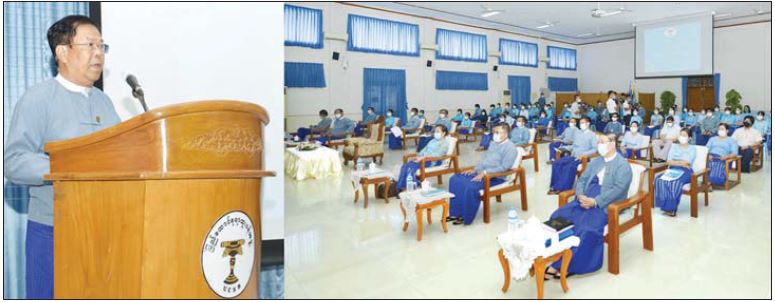 ပြည်ထောင်စုရာထူးဝန်အဖွဲ့မှ ဆောင်ရွက်ရသော လုပ်ငန်းတာဝန်များအား Manual မှ Digital စနစ်သို့ ကူးပြောင်းရန်ရည်ရွယ်ပြီး အကောင် အထည်ဖော်လျက်ရှိသော e-Recruitment and Integrated Civil Service System စီမံကိန်းပါစနစ်များ လက်တွေ့ အသုံးချတတ်စေရန်အတွက် Software Testing and User Training သင်တန်းဖွင့်ပွဲ အခမ်းအနားကို ယနေ့နံနက် ၁၀ နာရီတွင် ရုံးအမှတ်(၁၇) စုပေါင်းခန်းမ၌ ကျင်းပရာ ပြည်ထောင်စုရာထူးဝန်အဖွဲ့ ဥက္ကဋ္ဌ ဦးသန်းဆွေ တက်ရောက်၍ သင်တန်းဖွင့်အမှာစကား ပြောကြားသည်။