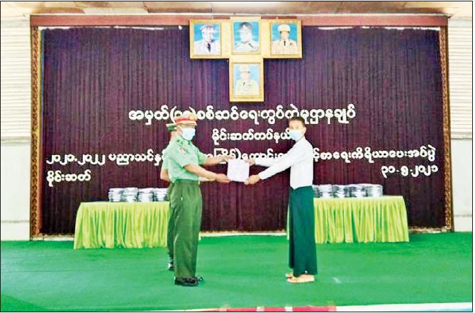 ၂၀၂၁-၂၀၂၂ ပညာသင်နှစ်ကျောင်းသား ကျောင်းသူ များအား ကျောင်းဝတ်စုံ၊ စာရေးကိရိယာနှင့် ပညာသင်စရိတ် ထောက်ပံ့ပေးအပ်ပွဲများကို ယနေ့ တွင် အရှေ့မြောက်တိုင်းစစ်ဌာနချုပ်၊ တြိဂံဒေသ တိုင်းစစ်ဌာနချုပ်၊ အနောက်တောင်တိုင်း စစ်ဌာနချုပ်၊ အနောက်မြောက်တိုင်း စစ်ဌာနချုပ်နှင့် အလယ်ပိုင်းတိုင်းစစ်ဌာနချုပ်တို့၌ ပြုလုပ်ရာ သက်ဆိုင်ရာ တိုင်းစစ်ဌာနချုပ် အသီးသီးမှ တိုင်းမှူးများနှင့် တာဝန်ရှိသူများ၊ အရာရှိ၊ စစ်သည်၊ မိသားစုများ၊ ဆရာ ဆရာမများ၊ ကျောင်းသားမိဘများနှင့် ကျောင်းသား ကျောင်းသူများ တက်ရောက်ကြသည်။