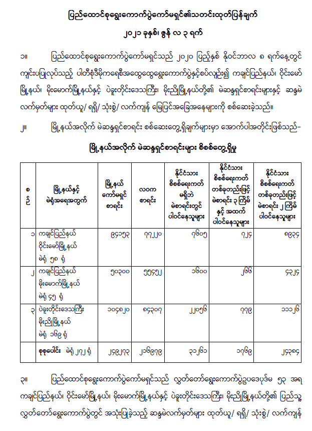ပြည်ထောင်စုရွေးကောက်ပွဲကော်မရှင်၏သတင်းထုတ်ပြန်ချက် ၂၀၂၁ ခုနှစ်၊ ဇွန် လ ၃ ရက်