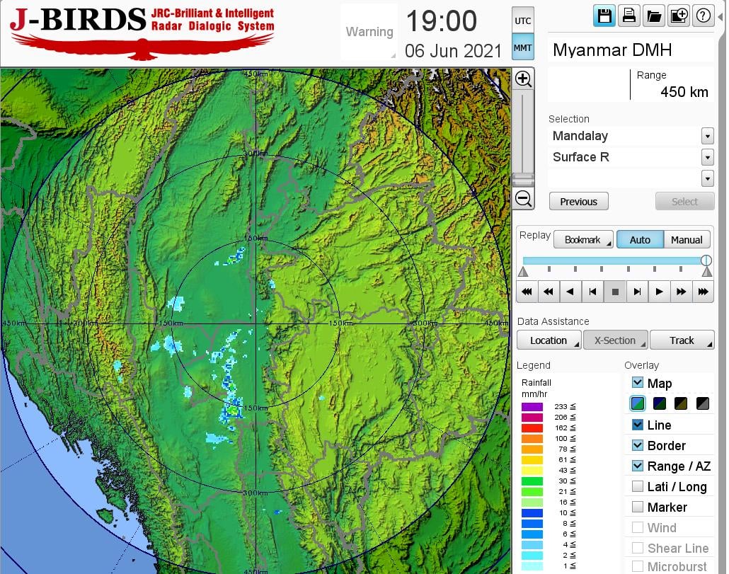 မနက်ဖြန်မွန်းတည့်ချိန်အထိခန့်မှန်းချက်။ မန္တလေးတိုင်းဒေသကြီး၊ မကွေးတိုင်းဒေသကြီးနှင့် ရှမ်းပြည်နယ်(အရှေ့ပိုင်း)တို့တွင် နေရာကျဲကျဲ၊ နေပြည်တော်၊ စစ်ကိုင်းတိုင်းဒေသကြီး၊ ဧရာဝတီတိုင်းဒေသကြီး၊ ရှမ်းပြည်နယ်(မြောက်ပိုင်းနှင့် တောင်ပိုင်း)နှင့် ကယားပြည်နယ်တို့တွင် နေရာစိပ်စိပ်နှင့် ကျန်တိုင်းဒေသကြီးနှင့် ပြည်နယ်တို့တွင် နေရာအနှံ့အပြား မိုးထစ်ချုန်းရွာပြီး၊ တနင်္သာရီတိုင်းဒေသကြီး၊ ချင်းပြည်နယ်၊ ရခိုင်ပြည်နယ်၊ ကရင်ပြည်နယ်နှင့် မွန်ပြည်နယ်တို့တွင် နေရာကွက်၍ မိုးကြီးနိုင်ပါသည်။ ရွာရန်ရာနှုန်း(၈၀) ဖြစ်ပါသည်။