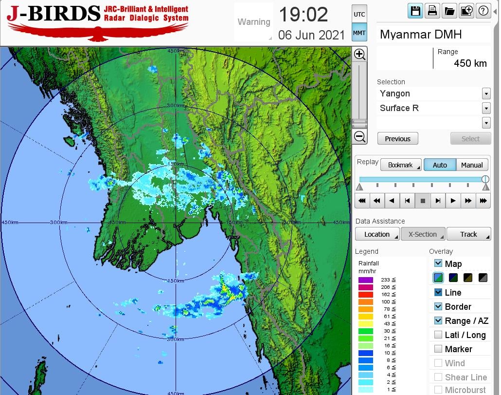 ဘင်္ဂလားပင်လယ်အော်အခြေအနေ။ ကပ္ပလီပင်လယ်ပြင်၊ ဘင်္ဂလားပင်လယ်အော်တောင်ပိုင်း၊ အရှေ့အလယ်ပိုင်းနှင့်အရှေ့မြောက်ပိုင်းတို့တွင် မုတ်သုံလေ အားအသင့်အတင့်ရှိနေပြီး၊ ကျန်ဘင်္ဂလားပင်လယ်အော်တွင် တိမ်အနည်းငယ်မှ တိမ်အသင့်အတင့် ဖြစ်ထွန်းနေပါသည်။