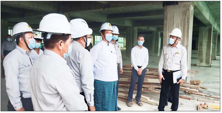 ညနေပိုင်းတွင် ပြည်ထောင်စု ဝန်ကြီးသည် အဆောက်အဦဦးစီး ဌာန အဆောက်အဦ အထူးအဖွဲ့ (၁)မှ တာဝန်ယူဆောင်ရွက်နေသော ရန်ကုန်ပြည်သူ့ဆေးရုံကြီး အဆင့်မြင့် (၇) ထပ်ဆောင် တည်ဆောက်ရေး လုပ်ငန်းခွင်သို့ ရောက်ရှိပြီး ဆေးရုံတိုးချဲ့ (၇) ထပ်ဆောင် လုပ်ငန်းဆောင်ရွက် ပြီးစီးမှု၊ ဆောင်ရွက်ဆဲနှင့် ဆက်လက် ဆောင်ရွက်မည့် လုပ်ငန်း အစီအစဉ်များ၊ အရည် အသွေး ထိန်းသိမ်းရေးလုပ်ငန်းများ ဆောင်ရွက်ထားရှိမှု၊ မြို့ပြ၊ ရေသန့်၊ လျှပ်စစ်ကဏ္ဍအလိုက် လုပ်ငန်းများ ဆောင်ရွက်ထားရှိမှုတို့ကို ကြည့်ရှုစစ်ဆေးရာ တာဝန်ရှိသူများက ရှင်းလင်း တင်ပြကြပြီး(ဝဲပုံ) ပြည်ထောင်စုဝန်ကြီးက လိုအပ်သည်များ မှာကြားခဲ့ကြောင်း သိရသည်။