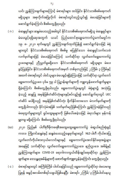 ပြည်ထောင်စုရွေးကောက်ပွဲကော်မရှင်၏ သတင်းထုတ်ပြန်ချက် ၂၀၂၁ ခုနှစ်၊ ဇွန်လ ၉ ရက်