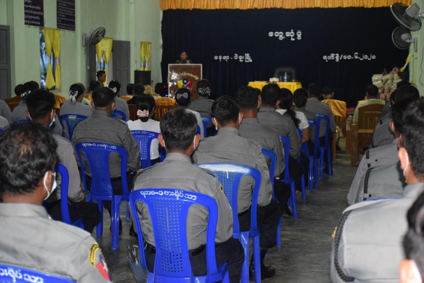 နေပြည်တော် ဇွန် ၁၁ နိုင်ငံတော်စီမံအုပ်ချုပ်ရေးကောင်စီအဖွဲ့ဝင် ပြည်ထဲရေးဝန်ကြီးဌာန ပြည်ထောင်စု ဝန်ကြီး ဒုတိယဗိုလ်ချုပ်ကြီး စိုးထွဋ်သည် ဇွန် ၁၀ ရက် ညနေပိုင်းတွင် ပဲခူးတိုင်းဒေသကြီး၊ ပဲခူးမြို့ နယ်မြေခံလုံခြုံရေးရဲတပ်ဖွဲ့ခွဲရှိ တပ်ဖွဲ့ဝင်နှင့် မိသားစုများအား တွေ့ဆုံသည်။ တွေ့ဆုံစဉ် ပြည်ထောင်စုဝန်ကြီး က နိုင်ငံတော်စီမံအုပ်ချုပ်ရေးကောင်စီဖြစ်ပေါ် လာရသည့် အခြေအနေအသေးစိတ်နှင့် နိုင်ငံတော်တွင် လတ်တလောဖြစ်ပေါ်နေသည့် အခြေအနေ များနှင့်စပ်လျဉ်း၍ နိုင်ငံတော်စီမံအုပ်ချုပ်ရေးကောင်စီ၏ ရှေ့လုပ်ငန်းစဉ် ၅ ရပ်၊ ဦးတည်ချက် ၉ ရပ် ချမှတ်ဆောင်ရွက်နေမှုများ၊ ယခင်အစိုးရ၏ မဲမသမာမှုဖြစ်စဉ် များအရ လက်ရှိပြည်ထောင်စု ရွေးကောက်ပွဲကော်မရှင်၏ မဲစာရင်းများ စစ်ဆေးဆောင်ရွက် နေမှုနှင့် တွေ့ရှိရမှုများ၊ ၂၀၂၁ ခုနှစ်၊ ဖေဖော်ဝါရီ ၁ ရက်မှ စတင်၍ ယနေ့ကာလအထိ တပ်မတော်မှ နိုင်ငံတော်အာဏာကို ထိန်းသိမ်းထားရှိစဉ်အတွင်း နိုင်ငံအတွင်းဆန္ဒပြမှု ဖြစ်စဉ်များ ဖြစ်ပွား ခဲ့ရာ အေးချမ်းစွာ ဆန္ဒပြမှုများမှတစ်ဆင့် ဆူပူဆန္ဒပြခြင်း၊ ၎င်းမှ အကြမ်းဖက်ဖြစ်စဉ်များသို့ အသွင်ပြောင်းလာကာ လုံခြုံရေးတပ်ဖွဲ့ဝင်များ သတ်ဖြတ်ခံရမှုများ၊ ဒဏ်ရာရရှိမှုများ၊ ဆူပူ အကြမ်းဖက်မှုဖြစ်စဉ်များမှ အဖျက်အမှောင့်လုပ်ငန်းမျိုးစုံ ဆောင်ရွက်နေမှုများ၊ နိုင်ငံတော် အတွင်း တည်ငြိမ်အေးချမ်းရေးကို ပျက်ပြားစေရေးအတွက် လက်နက်စွဲကိုင်ပုန်ကန်လာမှုများ နှင့် ပြည်ထဲရေးဝန်ကြီးဌာန၏ လက်ရှိဆောင်ရွက်နေမှုများကို တပ်ဖွဲ့ဝင်နှင့်မိသားစုများသို့ ချပြ ရှင်းလင်းသည်။ ဆက်လက်၍ ပြည်ထောင်စုဝန်ကြီးသည် လုံခြုံရေးတပ်ဖွဲ့များအနေဖြင့် လိုက်နာ စောင့်ထိန်း ရမည့် ကျင့်ဝတ်စည်းကမ်းများ၊ ဆောင်ရန် ရှောင်ရန် ကိစ္စရပ်များ၊ နိုင်ငံ့ဝန်ထမ်း များအနေဖြင့် စည်းလုံးညီညွတ်စွာ ဆောင်ရွက်ကြပြီး နိုင်ငံတော်အပေါ် သစ္စာစောင့်သိ၍ တာဝန်ကျေပွန်စွာ ဆောင်ရွက်ရေး၊ မိမိတို့ တပ်ရင်း၊ တပ်ဖွဲ့ဂုဏ်သိက္ခာမကျဆင်းစေရေး တစ်ဦးချင်းတာဝန်ရှိပြီး အထက်အရာရှိများအနေဖြင့် တပ်ဖွဲ့အတွင်း မျှတစွာ ကွပ်ကဲအုပ် ချုပ်ရေး၊ တပ်ဖွဲ့အတွင်း မိသားစု များ စည်းလုံးညီညွတ်စွာ နေထိုင်၍ ပြင်ပမှ သွေးခွဲမှု၊ ကောလာဟလဝါဒဖြန့်ချိမှုများကို ဂရုပြု ဆင်ခြင်သတိထားလိုက်နာဆောင်ရွက်ရေးနှင့် မိသားစုများ၏ သက်သာချောင်ချိရေးကိစ္စရပ်များကို တာဝန်ရှိသူများမှ ပေါင်းစပ်ဆောင်ရွက် ပေးရေး တို့နှင့်စပ်လျဉ်း၍ အသေးစိတ်မှာကြားသည်။ ယင်းနောက် ပြည်ထောင်စုဝန်ကြီးသည် လုံခြုံရေးရဲတပ်ဖွဲ့ခွဲရှိ တပ်ဖွဲ့ဝင်နှင့် မိသားစု များအား အခြေခံစားကုန်ပစ္စည်းများ ထောက်ပံ့ပေးအပ်ကာ မိသားစုများ