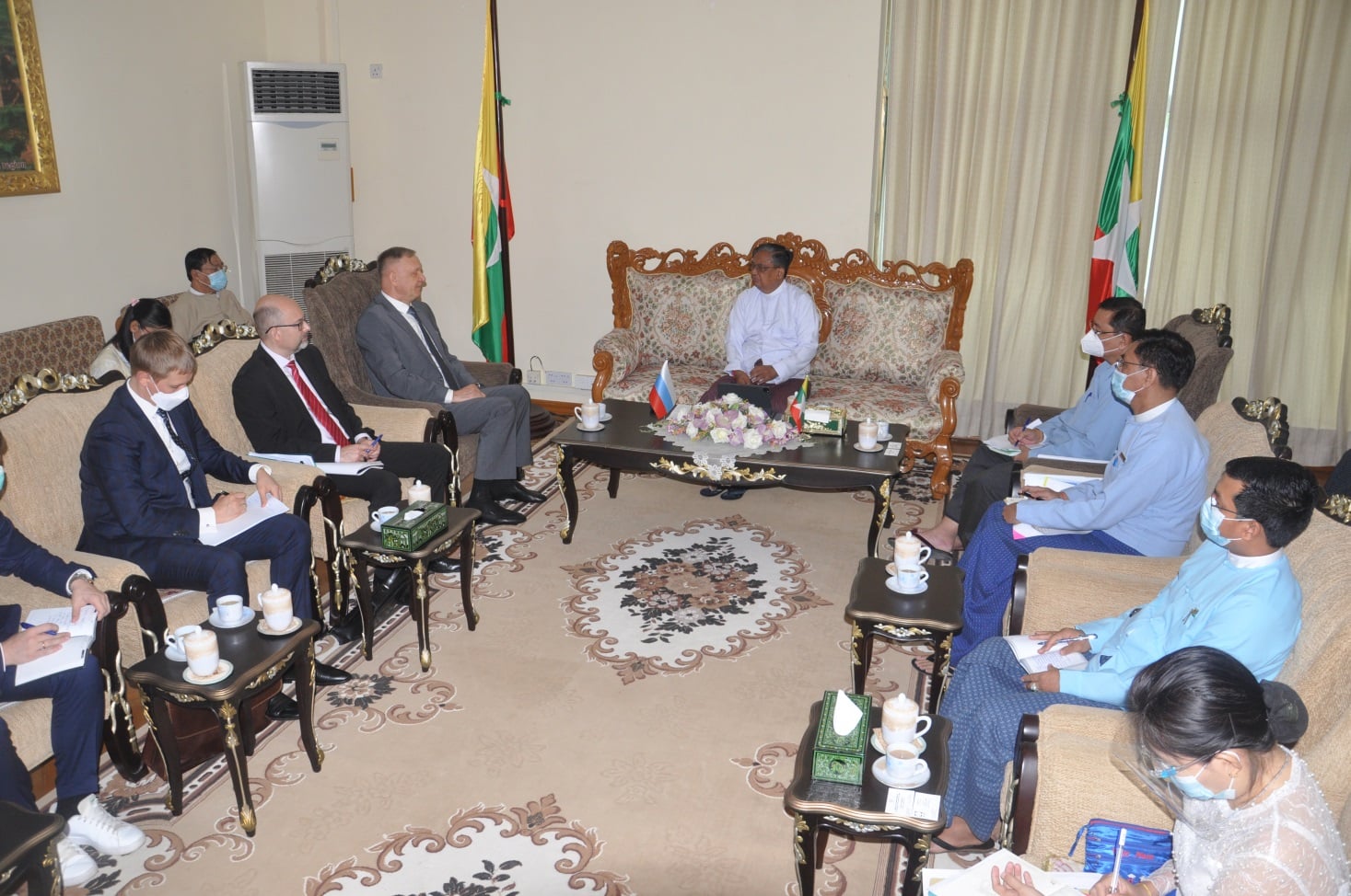 စက်မှုဝန်ကြီးဌာန၊ ပြည်ထောင်စုဝန်ကြီး ဒေါက်တာချာလီသန်းသည် မြန်မာနိုင်ငံ ဆိုင်ရာရုရှားနိုင်ငံ သံအမတ်ကြီး H. E. Dr. Nikolay Listopadov ဦးဆောင်သော အဖွဲ့ကို ယနေ့နံနက် ၁၀ နာရီတွင် ရုံးအမှတ်(၃၀)ရှိ ဧည့်ခန်းမ၌ လက်ခံ တွေ့ဆုံသည်။
