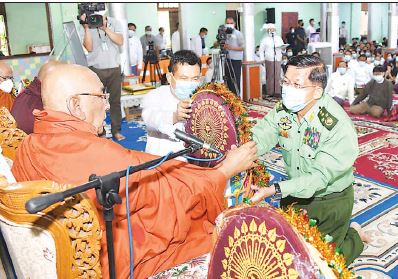 ၎င်းနောက် နိုင်ငံတော်စီမံအုပ်ချုပ်ရေးကောင်စီဥက္ကဋ္ဌ၊ ဒုတိယဥက္ကဋ္ဌနှင့် အခမ်းအနား တက်ရောက်လာကြသူများက ဆရာတော်၊ သံဃာတော်များအား လှူဖွယ်ပစ္စည်းများ ဆက်ကပ်လှူဒါန်းကြပြီး သီတဂူကမ္ဘာ့ ဗုဒ္ဓတက္ကသိုလ်များ၏ အဓိပတိ အဘိဓဇမဟာရဋ္ဌဂုရု၊ အဘိဓဇအဂ္ဂမဟာသဒ္ဓမ္မဇောတိက၊ မဟာဓမ္မကထိက ဗဟုဇနဟိတဓရ ရွှေကျင်နိကာယ ဥပဥက္ကဋ္ဌ ၊ တွဲဖက်ရွှေကျင်သာသနာပိုင် ဒေါက်တာ ဘဒ္ဒန္တ ဉာဏိဿရထံမှ ဓမ္မသံဝေဂကထာ တရားနာကြား၍ ရေစက်သွန်းချ အမျှ ပေးဝေကြသည်။