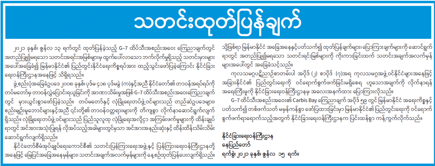 နိုင်ငံတော်အစိုးရ၏ ကြေညာချက်များ