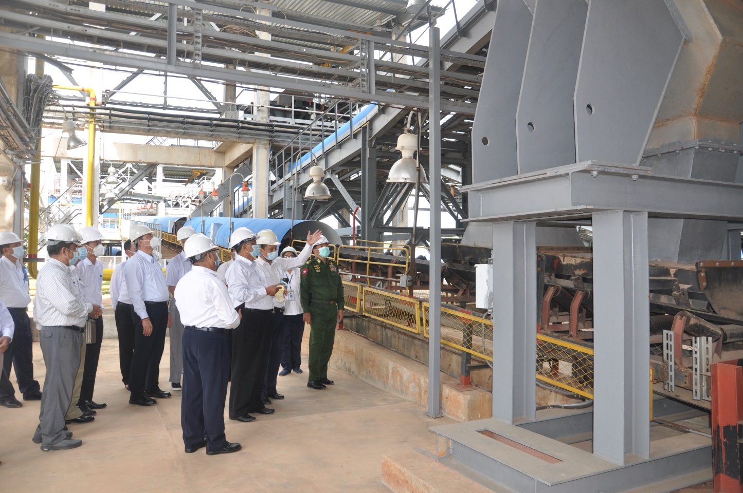 ယင်းနောက် သံသတ္ထုမိုင်းရှုရပ်၊ Primary Sizing Area,  Secondary Sizing Area, Lime and Dolomite Plant, Romelt Plant Area  ရှိ  စက်ပစ္စည်းကိရိယာများ တပ်ဆင် ပြီးစီးမှုအခြေအနေတို့ကို စက်ရုံတစ်ရုံချင်း အသေးစိတ် လှည့်လည်ကြည့်ရှုစစ်ဆေး၍ သံစိမ်းကုန်းကြမ်းနှင့် ကုန်ချောများ၏ အရည်အသွေး ထိန်းသိမ်းရေးအတွက် စံချိန်စံညွှန်း များ သတ်မှတ်နိုင်ရေးလိုအပ်ချက်များကို ညှိနှိုင်း ပေါင်းစပ်ဖြေရှင်း ဆောင်ရွက်ပေးသည်။