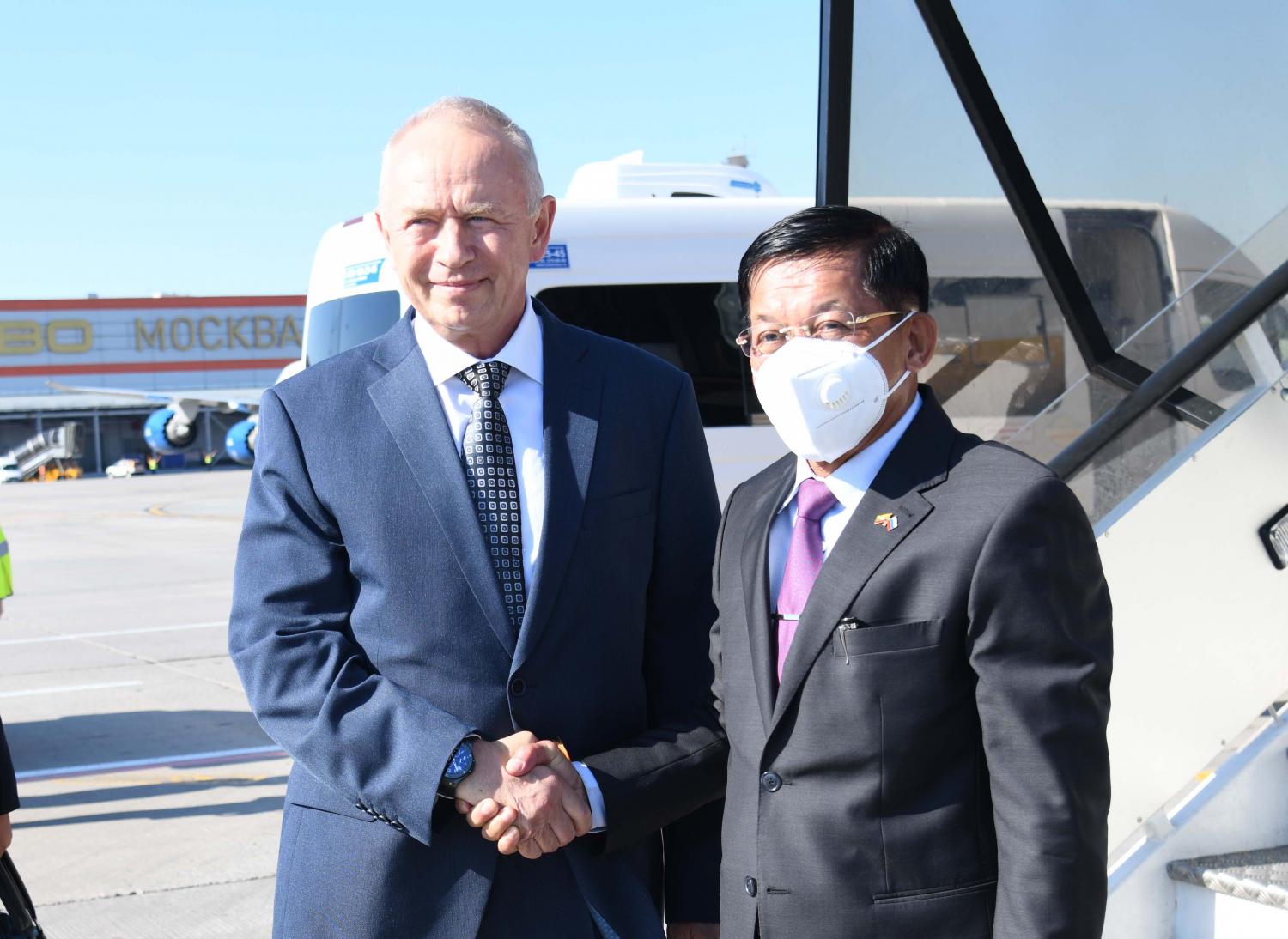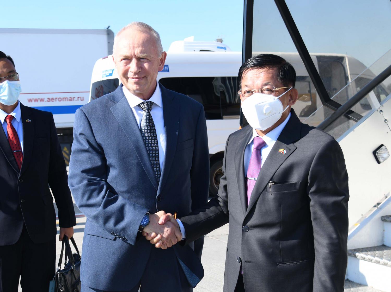 နိုင်ငံတော်စီမံအုပ်ချုပ်ရေးကောင်စီဥက္ကဋ္ဌ၊ တပ်မတော်ကာကွယ်ရေးဦးစီးချုပ် ဗိုလ်ချုပ်မှူးကြီး မင်းအောင်လှိုင် ဦးဆောင်သည့် ကိုယ်စားလှယ်အဖွဲ့ ရုရှားဖက်ဒရေးရှင်းနိုင်ငံသို့ ရောက်ရှိ