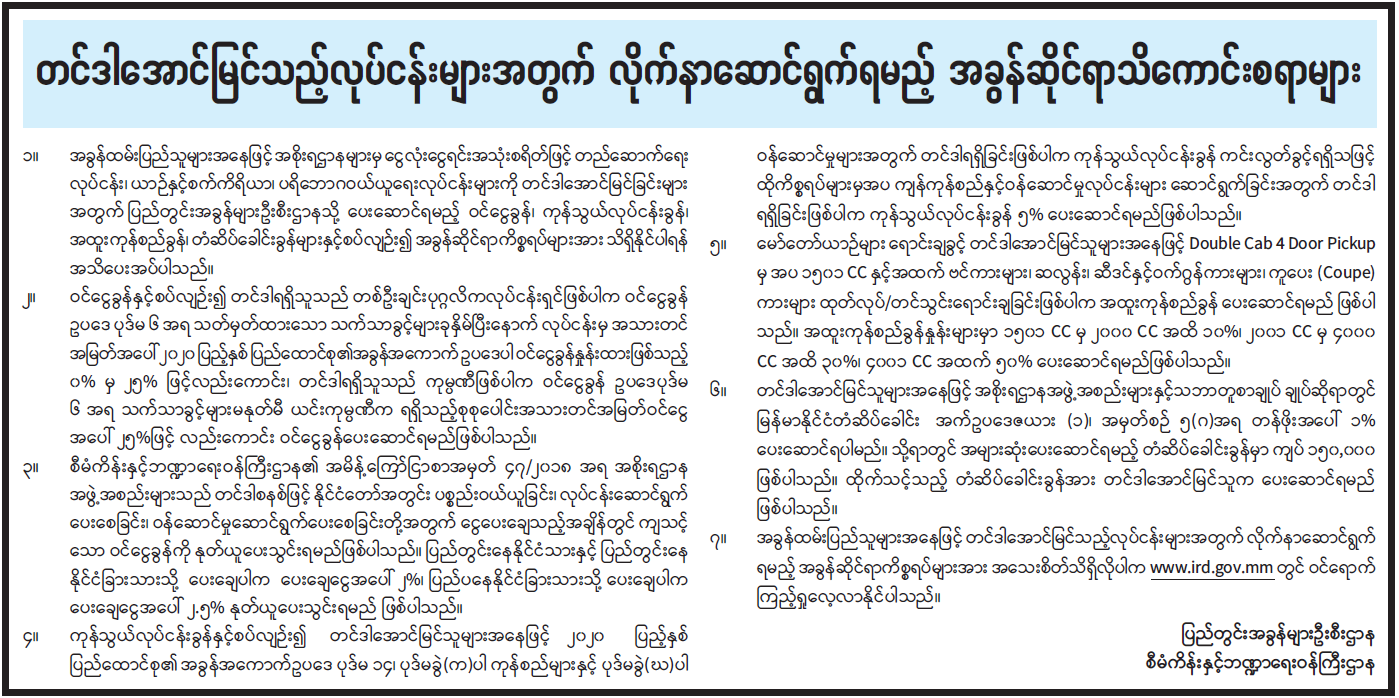 တင်ဒါအောင်မြင်သည့်လုပ်ငန်းများအတွက် လိုက်နာဆောင်ရွက်ရမည့် အခွန်ဆိုင်ရာသိကောင်းစရာများ