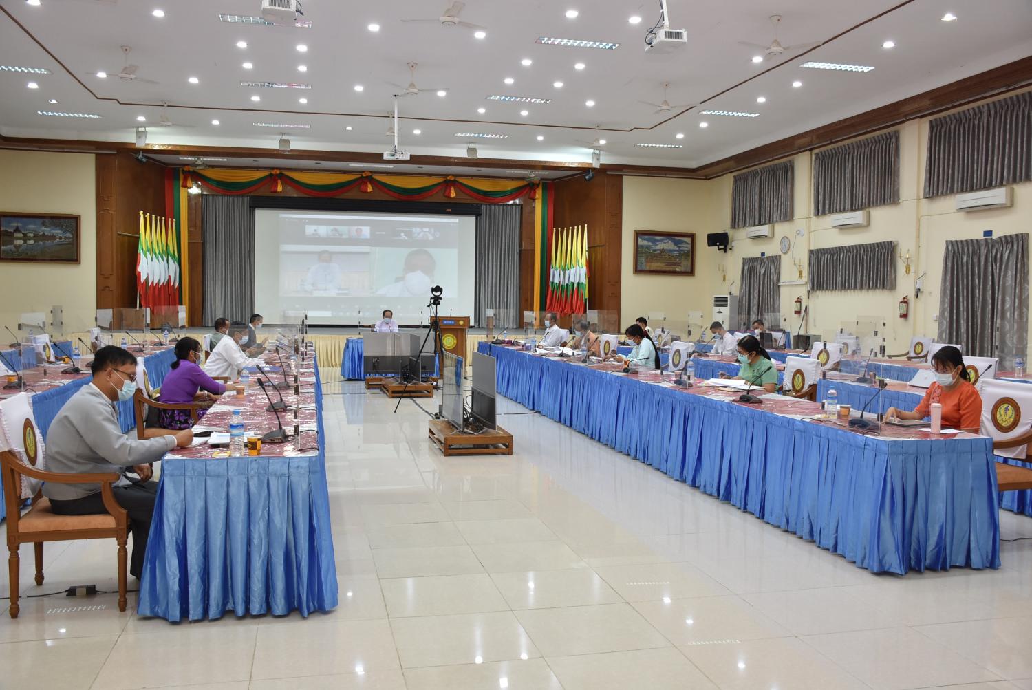 ဆက်လက်၍ ကိုဗစ်-၁၉ ရောဂါ ကာကွယ်ကုသရေးလုပ်ငန်း ဆောင်ရွက်နေမှုနှင့် ပတ်သက်၍ တိုင်းဒေသကြီး/ပြည်နယ် ပြည်သူ့ကျန်းမာရေးနှင့် ကုသရေးဦးစီးဌာနမှူးများမှ တင်ပြဆွေးနွေးရာ ပြည်ထောင်စုဝန်ကြီးနှင့် ဒုတိယဝန်ကြီးတို့က ညှိနှိုင်းဖြည့်ဆည်းပေးခဲ့ပြီး ပြည်ထောင်စုဝန်ကြီးက နိဂုံးချုပ် အမှာစကားပြောကြားသည်။